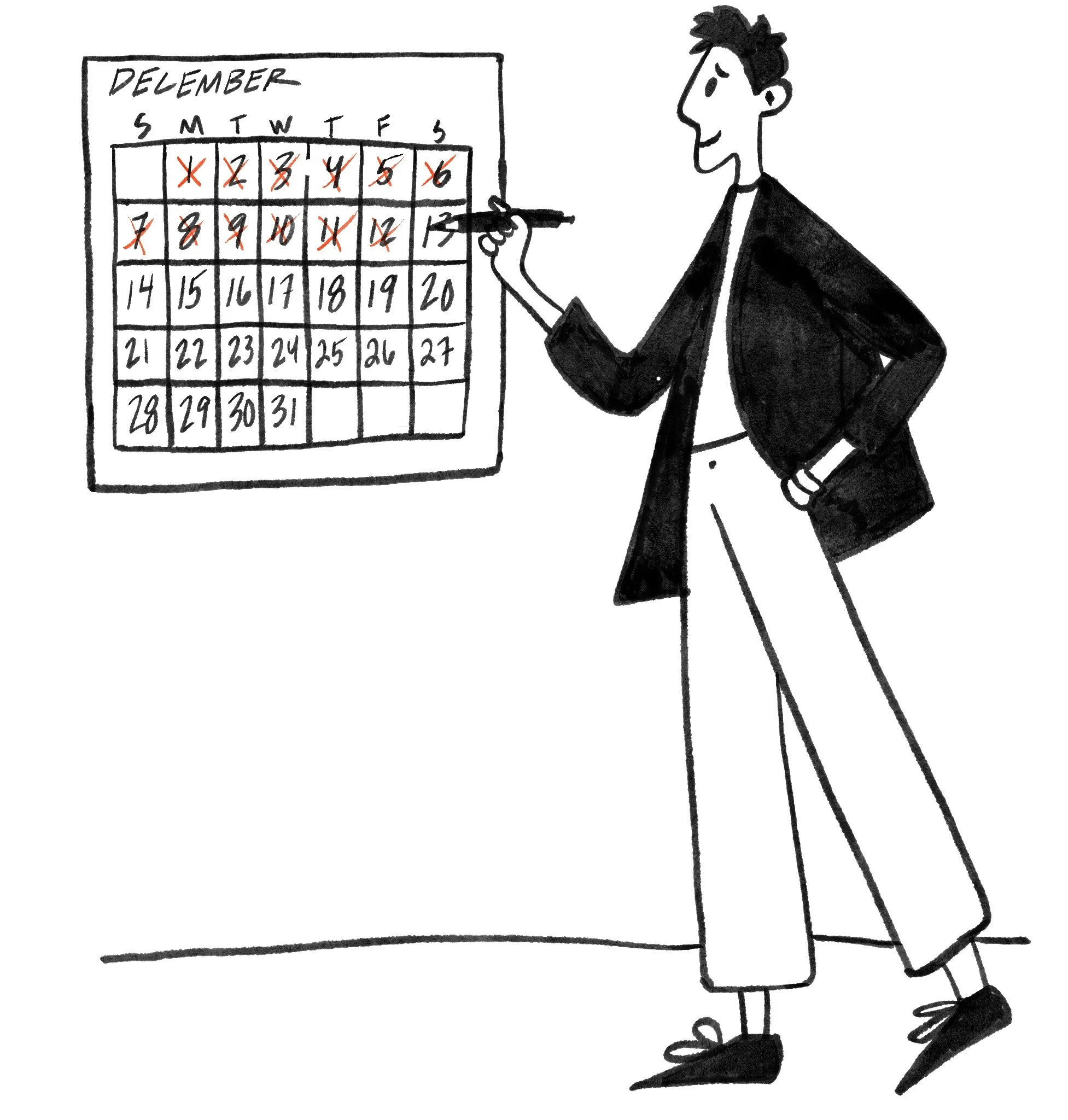 The wall calendar method: After I [get out of bed without hitting “snooze”], I will [put an X on my wall calendar].